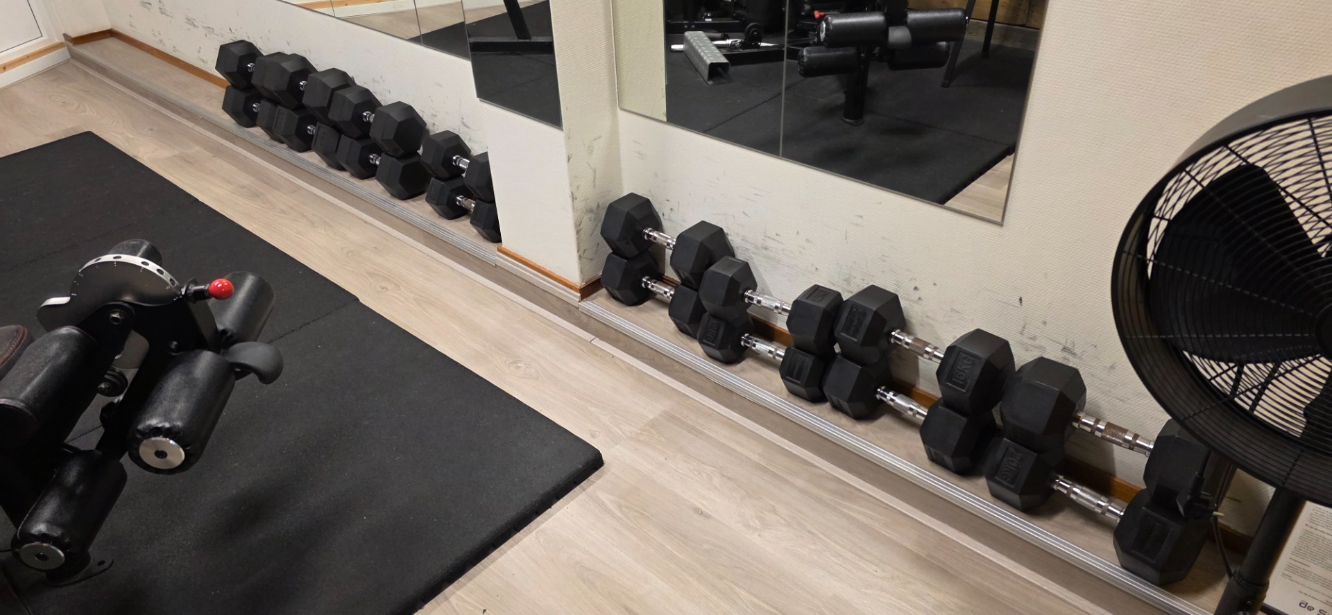 • een hexadumbelset (1 tot 25 kg)