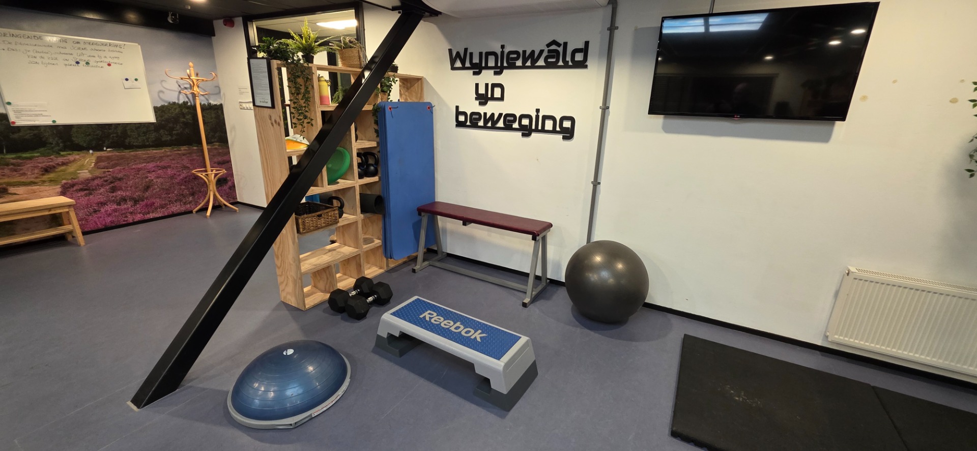 Laagdrempeligheid qua kosten, bereikbaarheid en toegang staat voorop. Er zijn twee ruimtes geschikt gemaakt om te fitnessen: een cardioruimte en een krachthonk. Het is "doe-het-zelf" fitness. Er is een mogelijkheid voor een rondleiding en instructie, en eventueel kunnen we voor een kleine vergoeding een individueel schema opstellen voor mensen die daar behoefte aan hebben. Er is dus geen begeleiding aanwezig.
